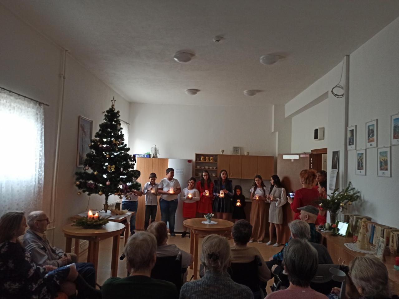 Zavítali k ním deti z nízkoprahového denného centra pre deti a rodinu, ktoré vystúpili so svojím programom a zaspievali si spolu vianočné koledy.