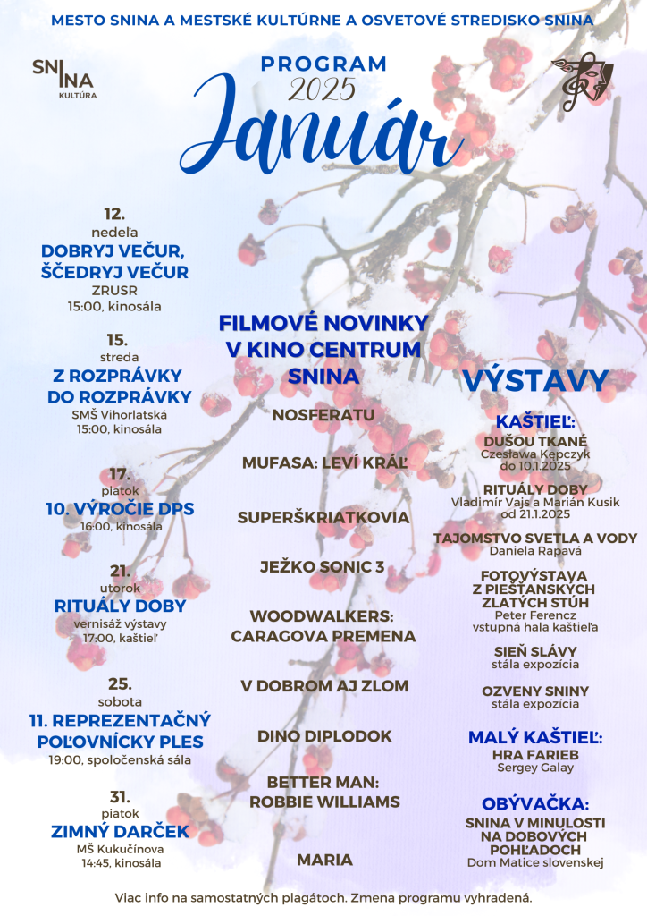 Pozývame vás, aby ste aj tento mesiac navštívili kultúrne podujatia, ktoré pre vás pripravilo Mestské kultúrne a osvetové stredisko. Tešíme sa na vašu účasť.