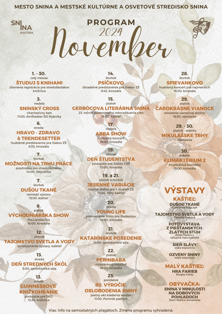 Pozývame vás, aby ste aj tento mesiac navštívili kultúrne podujatia, ktoré pre vás pripravilo Mestské kultúrne a osvetové stredisko. Tešíme sa na vašu účasť.