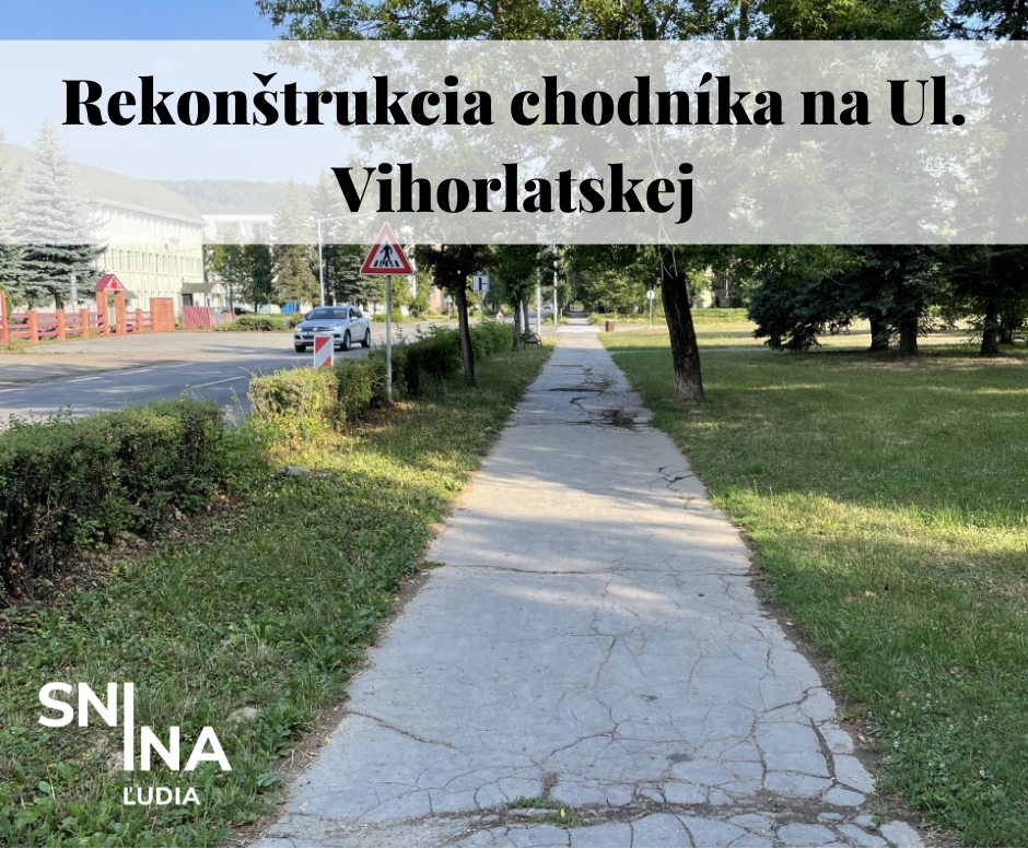 Od 12. júla 2021 pristúpili Verejnoprospešné služby, s.r.o. Snina k celkovej rekonštrukcii chodníka na Ul. Vihorlatskej. Opravy začali smerom od Mestskej športovej haly a pokračujú k potravinám Coop Jednota na križovatke Palárikova s Vihorlatskou (pri "Filovej).