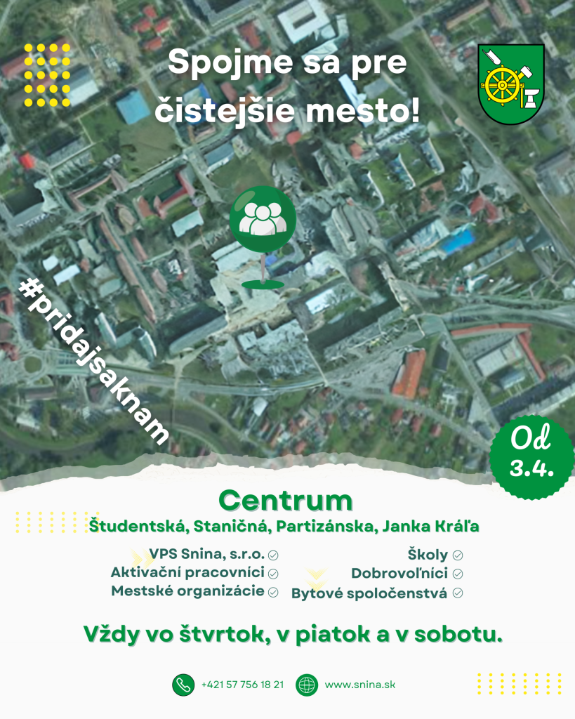 PRIDAJTE SA K NÁM AJ VY! Pre všetkých dobrovoľníkov budú pripravené rukavice a potrebné náradie. Spoločne môžeme urobiť naše mesto čistejším a krajším.