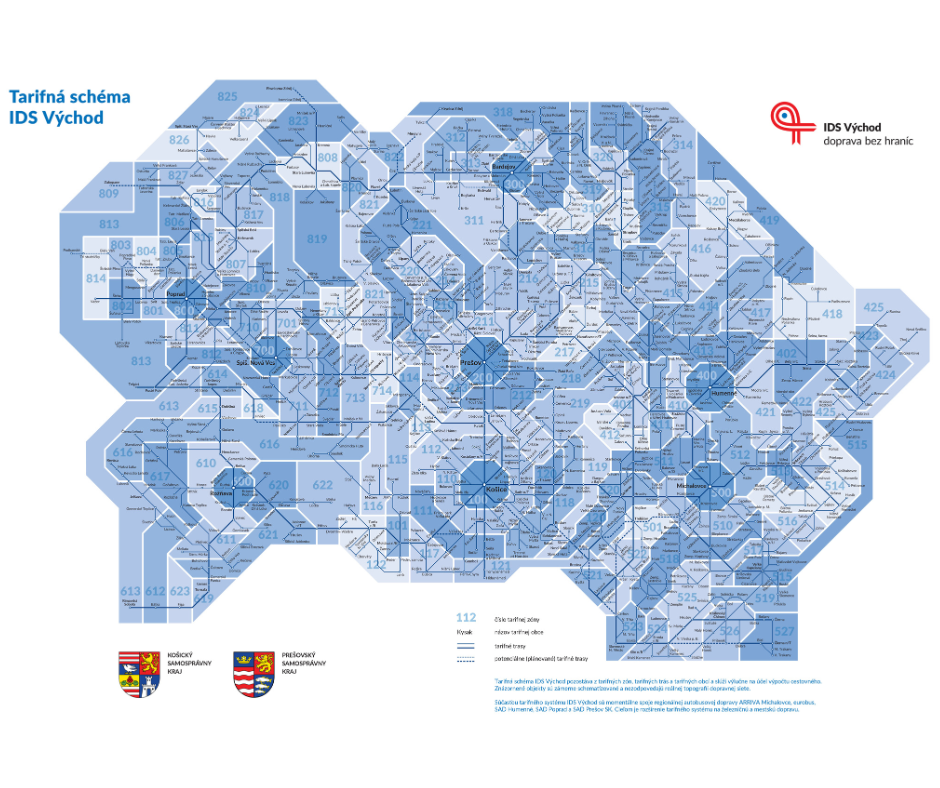 Územie východného Slovenska bude rozdelené na tarifné zóny, pričom cena cestovného sa bude odvíjať od počtu prejdených zón. Predplatné lístky budú dostupné v rôznych variantoch – ako jednodňové, mesačné, štvrťročné, polročné a ročné. Územná platnosť takýchto lístkov bude určená vybranými tarifnými zónami, s výnimkou celosieťových lístkov, ktoré budú platné na celom území východného Slovenska.