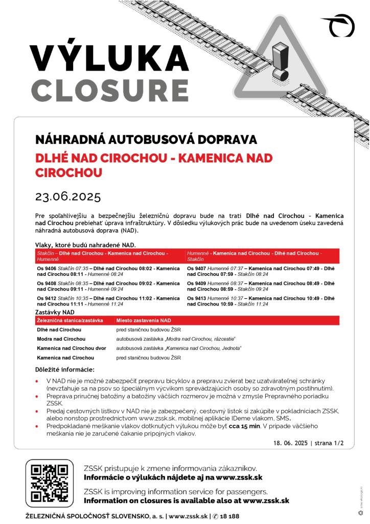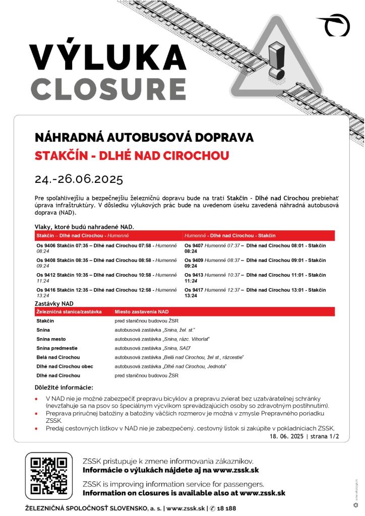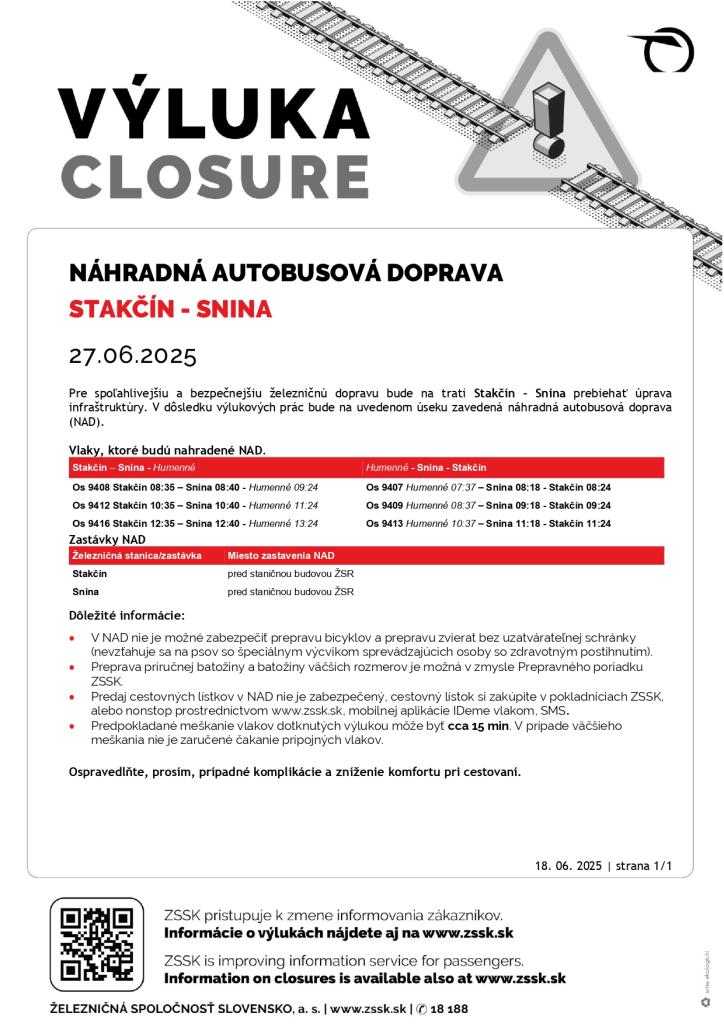 Informácie o aktuálnych výlukach nájdete vždy na stránke ZSSK, a.s.,: