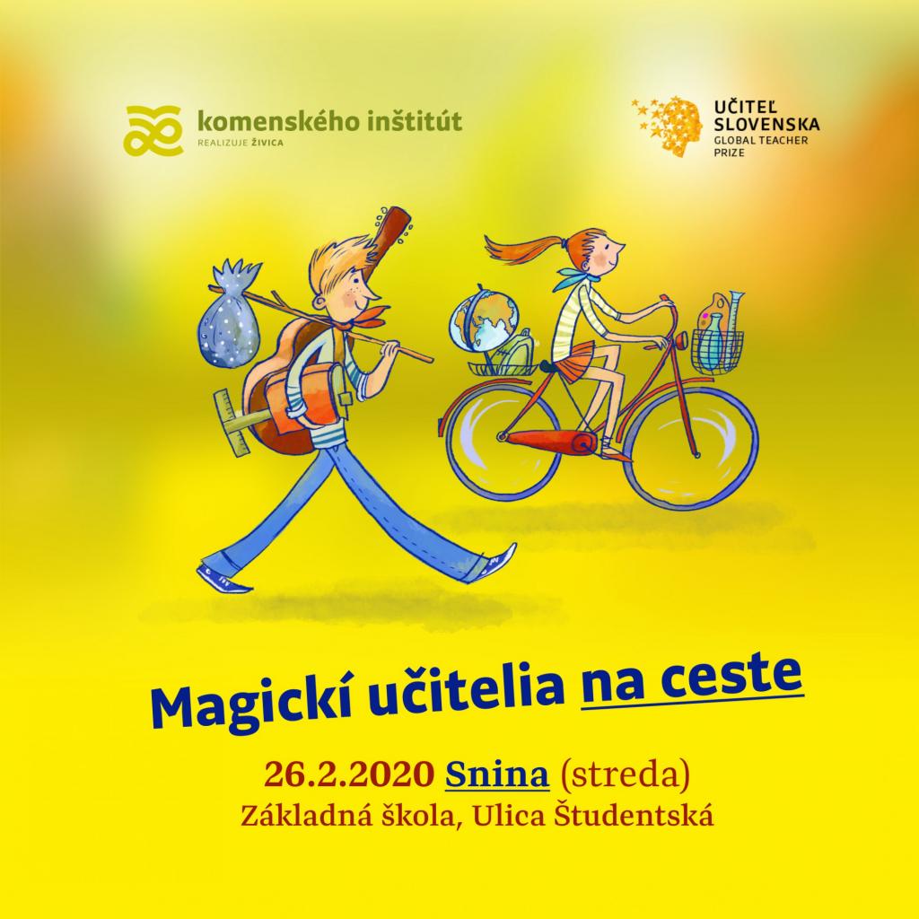 Snina je prvou zastávkou turné Magickí učitelia na ceste, ktoré organizuje program Komenského inštitút a ocenenie Učiteľ Slovenska. „Chceme ukázať verejnosti, že na Slovensku máme množstvo kvalitných učiteľov, ktorí učia zaujímavo a zaslúžia si za svoju prácu naše ocenenie. Zároveň by sme radi inšpirovali ďalších učiteľov a podnietili ich, aby sa aj oni vzdelávali. Pretože veríme, že vynikajúce školstvo tvoria vynikajúci učitelia a vyučovanie, ktoré bude dávať zmysel a baviť ich, bude takisto baviť aj ich žiakov,“ vysvetľuje Radoslav Plánička z Komenského inštitútu.