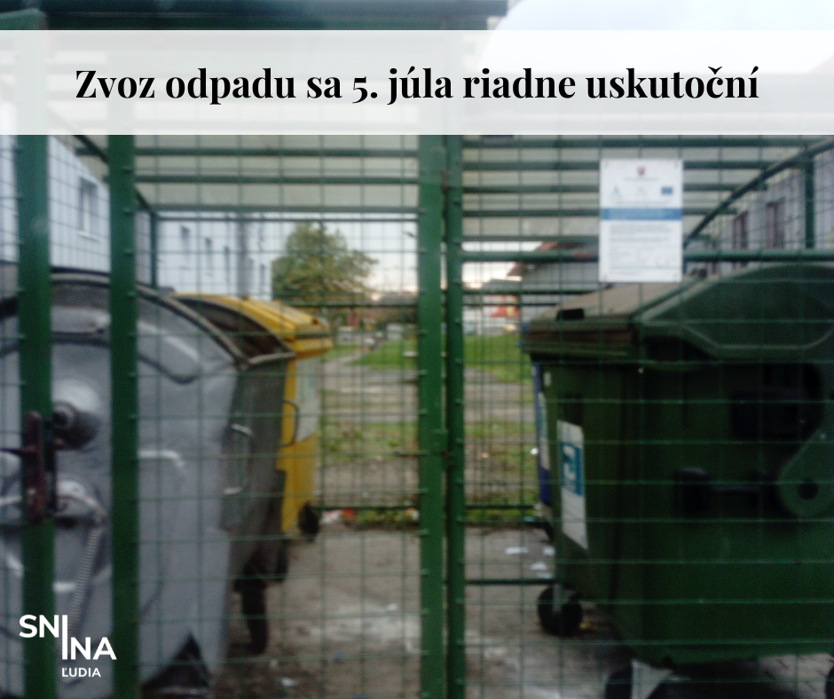 Verejnoprospešné služby Snina, s. r. o. oznamujú občanom, že v piatok 5. júla bude zvoz komunálneho i bio odpadu realizovaný riadne podľa harmonogramu.